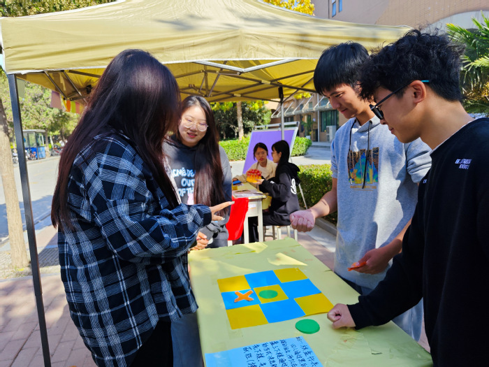 温“心”活动,同“玩”趣味游戏,10月31日开展了棋盘行兵、小球运送、神笔马良、一圈到底等4项心理游戏和希望之墙许愿祝福活动,学生们自由组队参加游戏、赢得奖品,现场氛围欢快,其乐融融。2023级新生魏梦展说:“这场愉悦的活动体验不仅缓解了我学习上的压力,锻炼了身体,还提高了我的团队协作能力和交流沟通能力更加关注自己心灵的健康成长”。