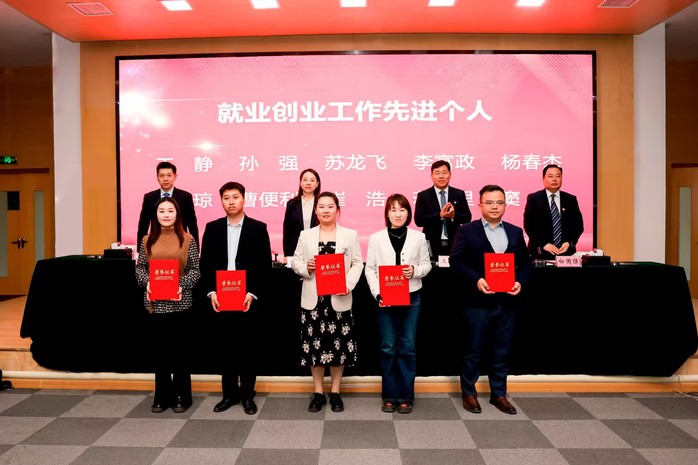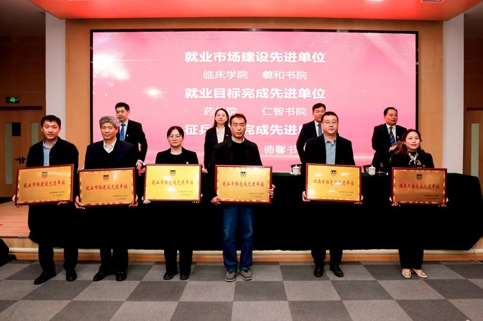 顾欢宣读《新乡医学院三全学院关于表彰2023年就业创业评估工作先进单位及先进个人的决定》,并进行了学校2023年就业创业评估工作表彰仪式,学校领导分别为“就业创业工作先进单位”“就业市场建设先进单位”“就业目标完成先进单位”“征兵目标完成先进单位”“就业创业工作先进个人”获得单位及个人颁奖。