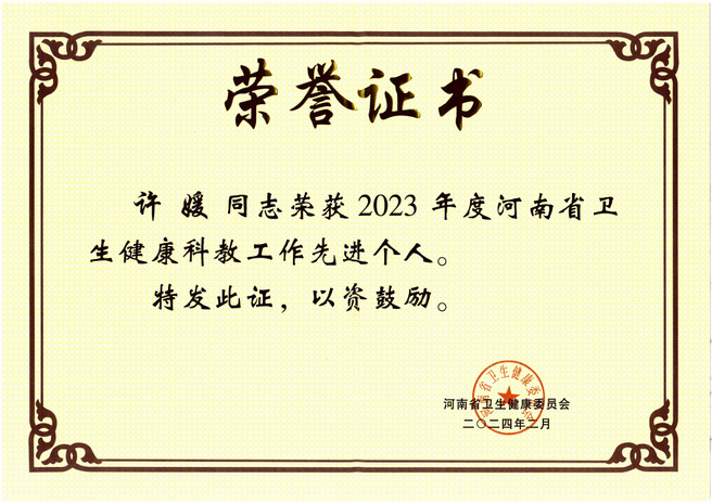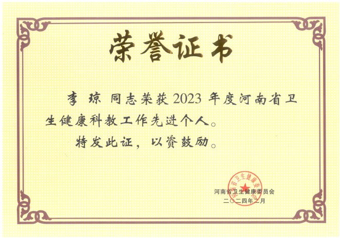 4月3日,2024年度全省卫生健康科技教育工作会议在郑州召开,我校副院长白国强和教务部负责人代表学校参会。会上宣读公布《关于公布2023年全省卫生健康科技教育工作先进单位和先进个人的通知》(豫卫科教〔2024〕5号),我校被评为“2023年度河南省卫生健康科技教育工作先进单位”,我校李琼和许媛两位同志荣获“2023年度河南省卫生健康科技教育工作先进个人”荣誉称号。