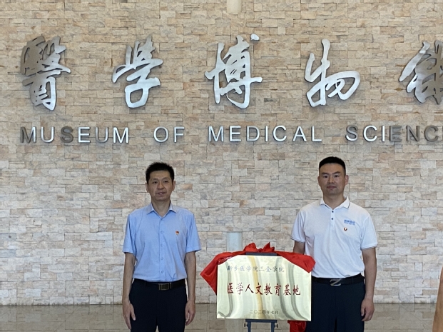 顾欢副院长和郑伟馆长共同为“医学人文教育基地”揭牌。