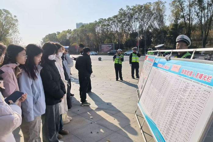 紧接着,同学们来到酒驾模拟检测区,让同学们通过专用设备观测前后反应变化,增强对酒驾危害的认识。现场还通过展示车祸后受损车辆,警醒同学们,时刻牢记交通安全知识,时刻保持交通安全意识。“看了这些车辆,触目惊心,同时也提醒我之后的出行过程,必须牢记交通安全知识,按照交警的要求佩戴头盔,文明出行,更要安全出行。”参与此次活动的雷诺说道。完成参观学习后,学生们并没有停下脚步,而是化身为“交通安全小讲师”,主动向在场的热心市民讲授他们刚刚学到的交通安全知识。他们耐心讲解交通标志标识的含义,分享安全驾驶和应急处置的小技巧,并提醒市民们要时刻遵守交通规则,确保出行安全。