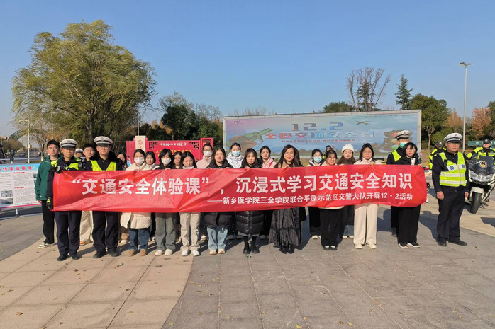 在第十二个“全国交通安全日”之际,为了进一步增强大学生的交通安全意识,提升自我保护能力,新乡医学院三全学院联合平原示范区交警大队,于12月2日在平原新区凤湖南广场开展了一场别开生面的“交通安全体验课”活动。此次活动旨在通过沉浸式的学习方式,让交通安全知识深入人心,提升学生的交通安全意识和自我保护能力。