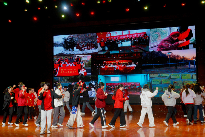 晚会围绕三大篇章渐次展开,节目涵盖歌曲、舞蹈、情景剧、朗诵、合唱等多种艺术形式,生动展现了羲和学子朝气蓬勃的精神风貌与“强国有我“的使命担当,为全场师生奉献了一场精彩纷呈的视听盛宴。
